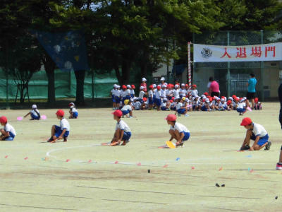 小学校初めての運動会も、もうすぐ本番です。きょうは暑い一日でしたが、1年生も頑張りました。鮮やかなスカーフを持ったダンスをお楽しみに…