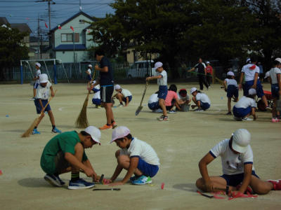 午後は高学年児童が校庭整備などを行いました。みんな一生懸命。時間より早く終えることができました。明日の運動会、予定通り、全て実施できることを祈るのみです。