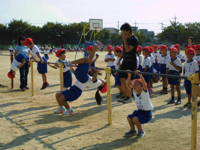 金曜日の朝は元気にさわやかタイム。各学年毎にいろいろな運動を行いました。