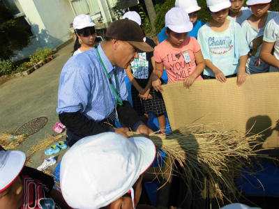 5年のバケツ稲も実りを迎えました。学校応援団である渡辺様の指導の下、