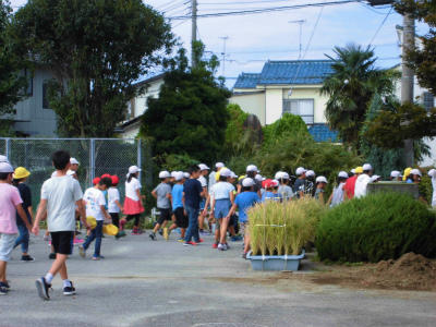 5年のバケツ稲も実りを迎えました。学校応援団である渡辺様の指導の下、