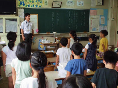 1年生は5時間で終了です。帰りの会では、明日の予定を黒板に貼りだし、帰りの支度をしています。スムースにできるようになっています。