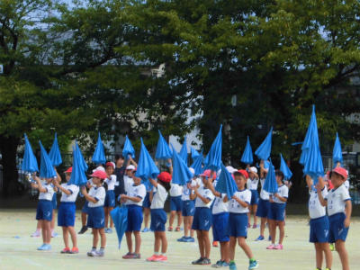小学校初めての運動会も、もうすぐ本番です。きょうは暑い一日でしたが、1年生も頑張りました。鮮やかなスカーフを持ったダンスをお楽しみに…