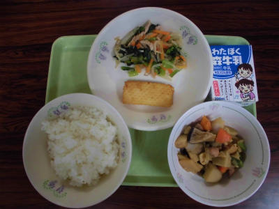 ごはん 牛乳 いかのねぎみそ焼き 野菜炒め 筑前煮