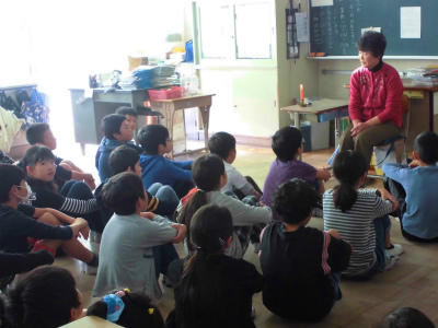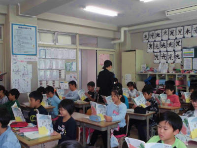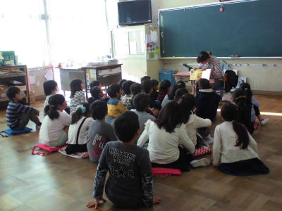 PTAによる読み聞かせです。本日は、1,2年生の学級で行っていただきました。