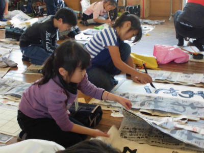 4年生 書写 書きぞめ こちらも道具が欠かせません。道具の手入れも大事になります。