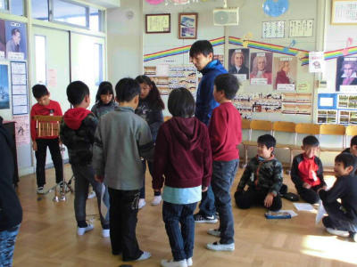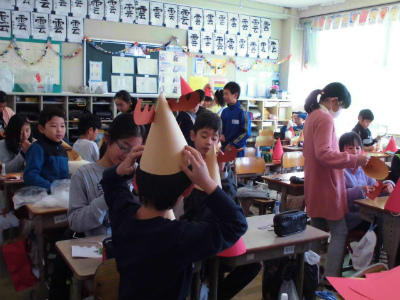 4年生 学級活動 こちらの学級では、クリスマス会に手作りの帽子を作って楽しもうという計画を立て、実行しているところです。