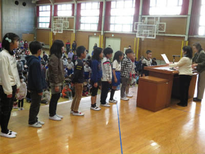 2学期は、様々な行事がありました。作文関係、図工関係、書写関係、校内持久走大会の入賞者に賞状を渡しました。賞状を渡された友達に大きな拍手ができる児童が大勢いました。