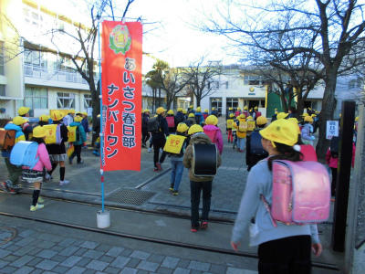 あいさつ春日部ナンバー1をめざして、元気よく朝の挨拶ができました。