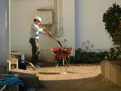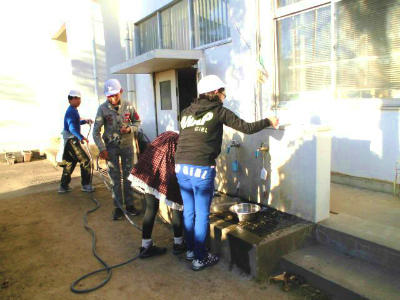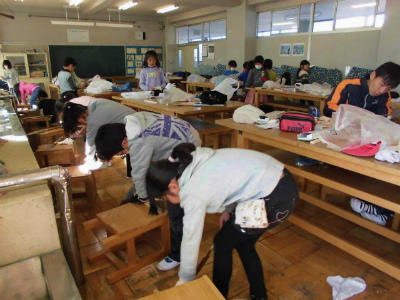 朝から一生懸命働いているのは、側溝掃除をする児童とうさぎ小屋を綺麗にしている児童です。寒さの中でも冷たい水に手を付け、頑張っています。