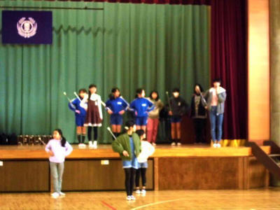明後日(17日水曜日)朝に行う児童朝会準備のために、昼休みに集まり練習をしている児童です。何かを行うためには、準備が必要です。準備にも一生懸命な子どもたちです。