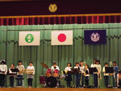 今朝の児童朝会 金管バンド・バトンクラブ