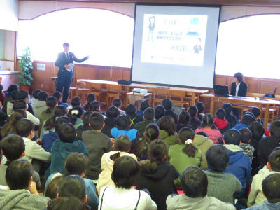 地域の人にもあいさつすること、ポケットに手を入れずに登校することなども指導し、今学期も安全と自分の命は自分で守る約束をしました。