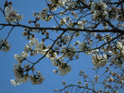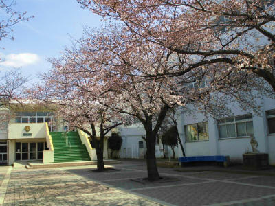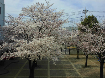2階の昇降口から見ると、とてもきれいな桜が目に飛び込んできました。