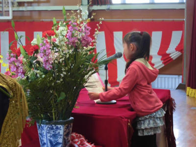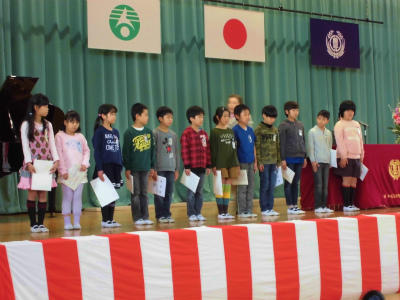 修了式では、児童代表として、1年生が発表しました。とてもしっかりと発表することができました。