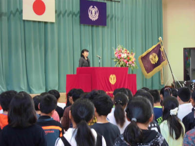 校長先生からお話がありました。みんなしっかりとした態度で、話を聞いていました。
