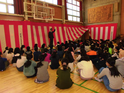 修了式が終わり、4年生が学年集会を開いていました。4月からは、5年生ですね。