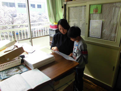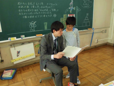 一つ一つていねいに、どこがよかったのかなどを担任から説明を受けています。