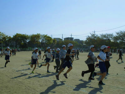 登校したら、すぐに校庭に出て、マラソンをします。体力がついてきていますね。