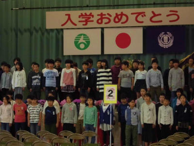 入学式では、6年生と2年生が歌のプレゼントをします。最後の練習をがんばっているところです。