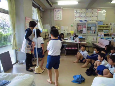 朝の支度、上手にできたかな…6年生のお兄さん、お姉さんが教えてくれます。