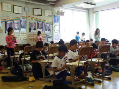昨年度からイングリッシュルームで英語活動を行っています。英語指導教員を中心として、大きな声で『I am hungry』などと発声していました。