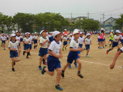 登校したら、すぐに校庭に出て、マラソンをします。体力がついてきていますね。