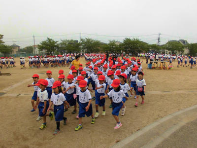 1年生も元気よく手を振りながら、退場行進することができました。
