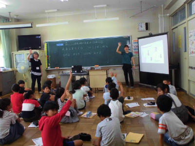 いつも明るく元気に授業を進めてくださるお二人の英語の先生です。英語をたくさん聞いて話す時間です。きょうで授業が最後の先生もいらっしゃいました。お世話になりました。