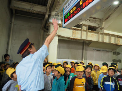2年生 駅見学の様子です。「ホームにはどんな物があるのか。」という説明も伺うことができました。切符を買って実際に電車に乗るのは10月5日です。