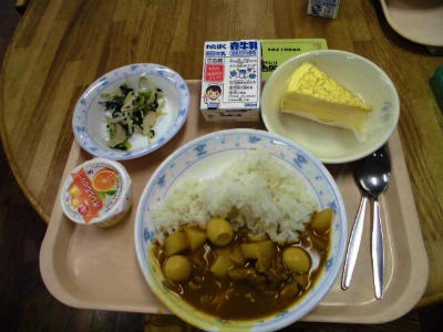 除去は、卵抜きのカレールウ、誕生日の子には、ケーキ、またはゼリーのお祝いがつきます。