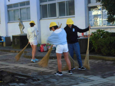 朝の活動は、学校をきれいにするところから始まります。最近は、廊下拭きとともに、落ち葉掃きに取り組む子どもたちもいます。