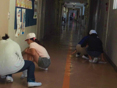6年生、朝の廊下清掃の様子です。委員会の仕事などがない日に、ボランティアで行っています。