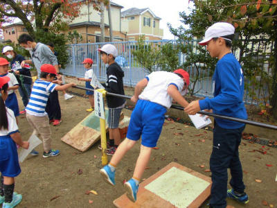 逆上がり教室では、業間休みに運動委員会のみなさんが、逆上がりができるようにと、アドバイスや検定を行っています。