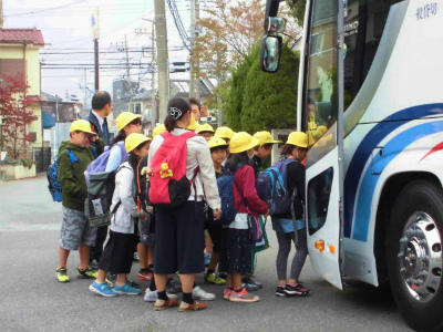 これからバスに乗って、龍Q館、庄和浄水場、春日部環境センターに向けて出発します。