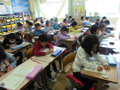 1年 算数 先生のお話を聞きながら、自分でノートに計算をすることができました。