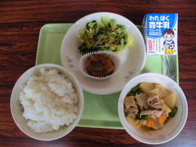 ごはん 牛乳 生揚げの野菜あんかけ みそ香あえ 大根と豚肉の煮物