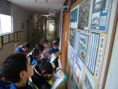 3年 豊プロ:昔の学校の様子を調べています。みんな一生懸命メモを取っています。