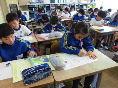 5年 学級活動 みんなで意見を出し合いながら話合っていました。
