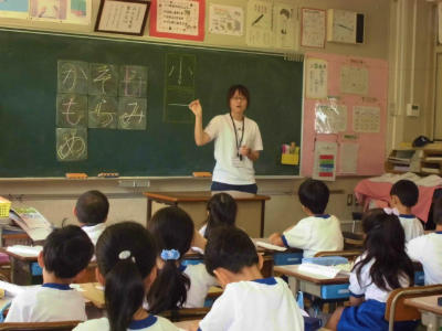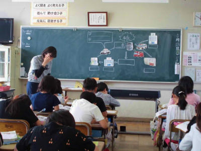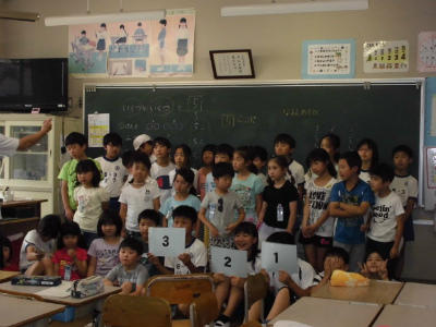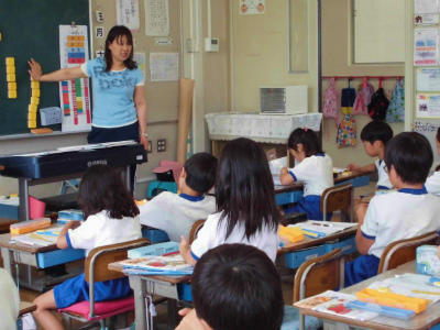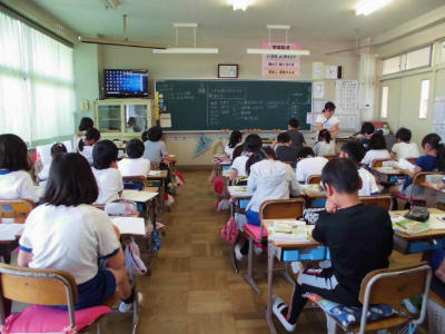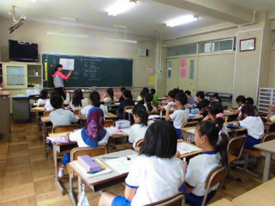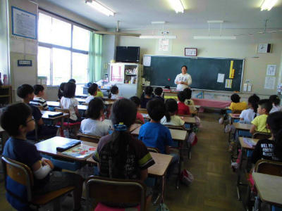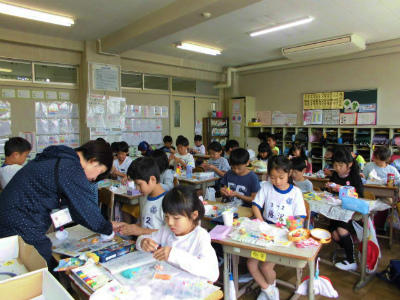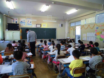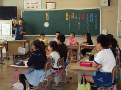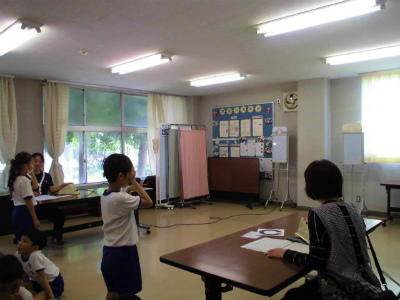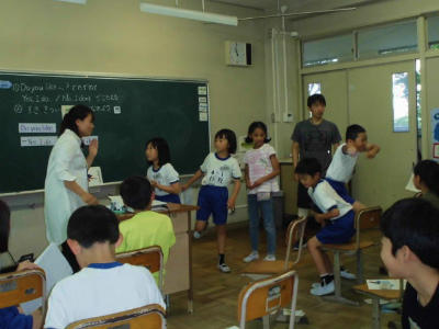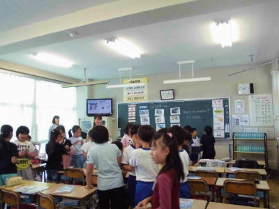 4年生 外国語活動 英語指導の先生も一緒です。英語が上手く使えたお友だちは嬉しそうです。