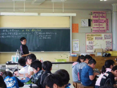 4年生 学級会 みんなの思いをまとめながら、クラスの目標を考え、話し合っています。