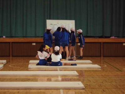 1年生 体育 体を大きく後ろに反らせています。
