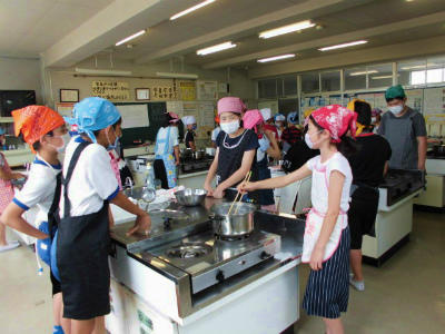 5年生 家庭科 初めての調理実習。卵をゆでています。