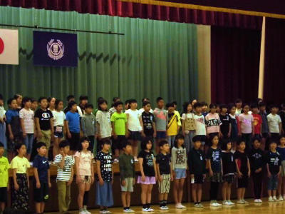 5月の歌は「世界に一つだけの花」全校児童の歌声が、体育館に響き渡りました。