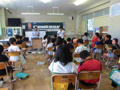 姿勢良く話を聞く子どもたちです。2年生が生活科の授業後に、よくできたことを先生から聞いているところです。