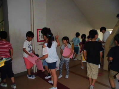 社会科の学習で、3年生の子どもたちは学区を歩き、地域を知っていきます。地図を持ち、メモもしながら学習してきました。暑さの中、しっかり歩きました。