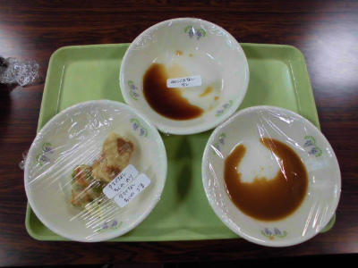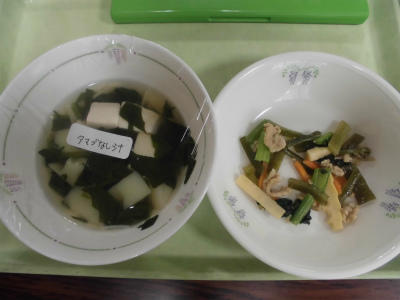 除去は、かきたま汁の卵抜きと、さばのみそがけのごま抜きです。