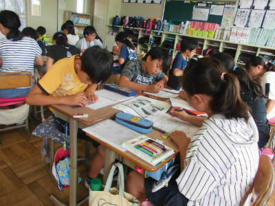 6年生 国語 豊春小のよいところ 取材したり友だちと意見交換したりしながら、新聞を作っています。