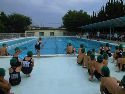 4年生 水泳 泳力を測定しています。教の記録は??