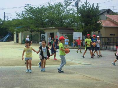 校庭で遊べる日はとてもうれしそうな子どもたちです。ボール遊びや鬼ごっこが人気です。チャイムがなると、走って教室に戻ることもできます。